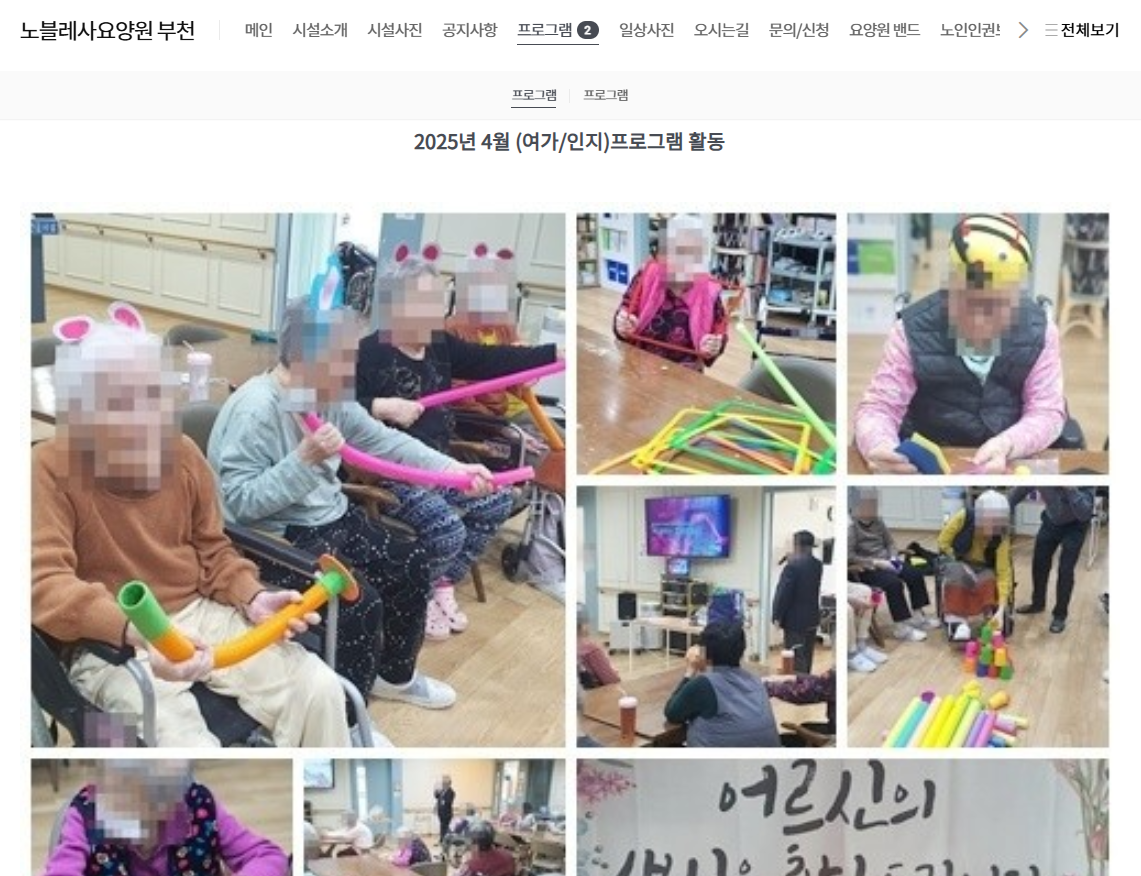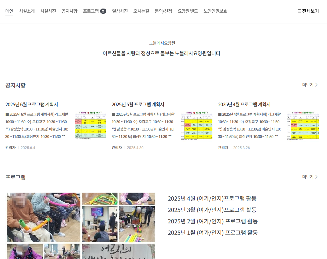 | 제목 | 노블레사요양원 홈페이지 주소 안내 | 공지일 | 2025.07.01 |